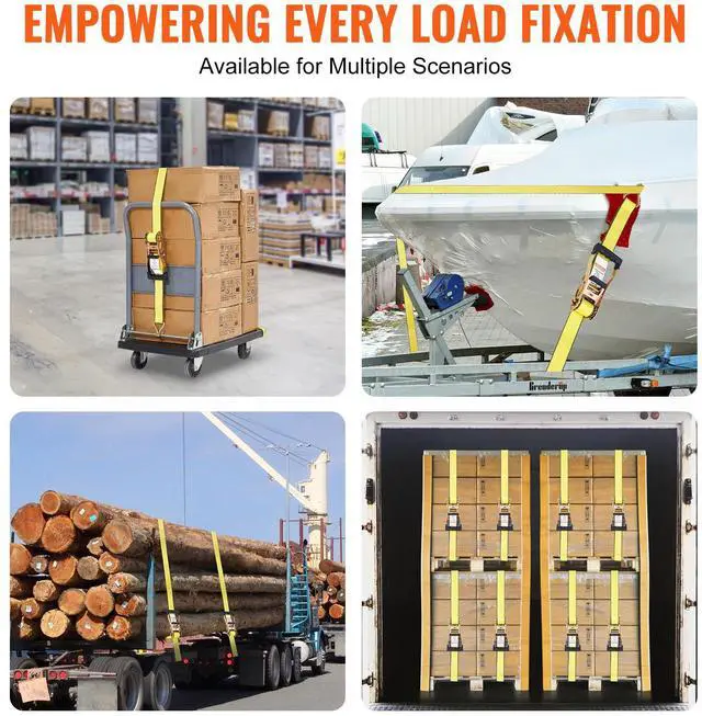 VEVOR Ratchet Tie Down Straps (4PK), 10000 lb Break Strength, Double J Hook Includes 4 Premium 2" x 27' Rachet Tie Downs with Padded Handles, for Moving Securing Cargo, Appliances, Lawn Equipment