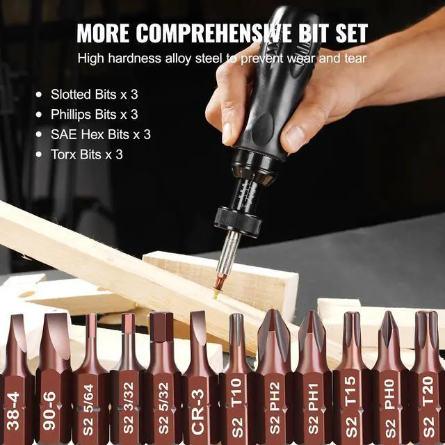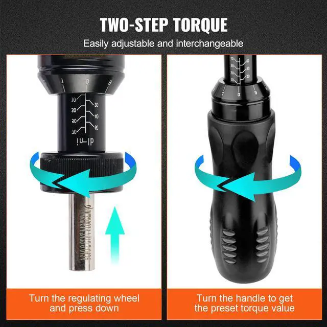 VEVOR Torque Screwdriver, 1/4" Drive Screwdriver Torque Wrench, Electrician Torque Screwdriver with Scale, 10-70 in/lbs Torque Range, 1 in-lbs Torque Increment Torque Screwdriver with Bits & Case