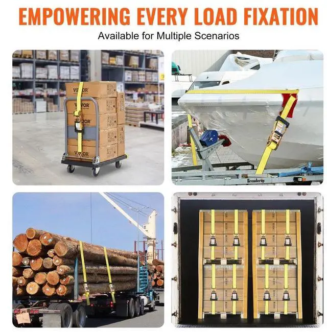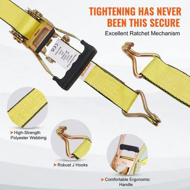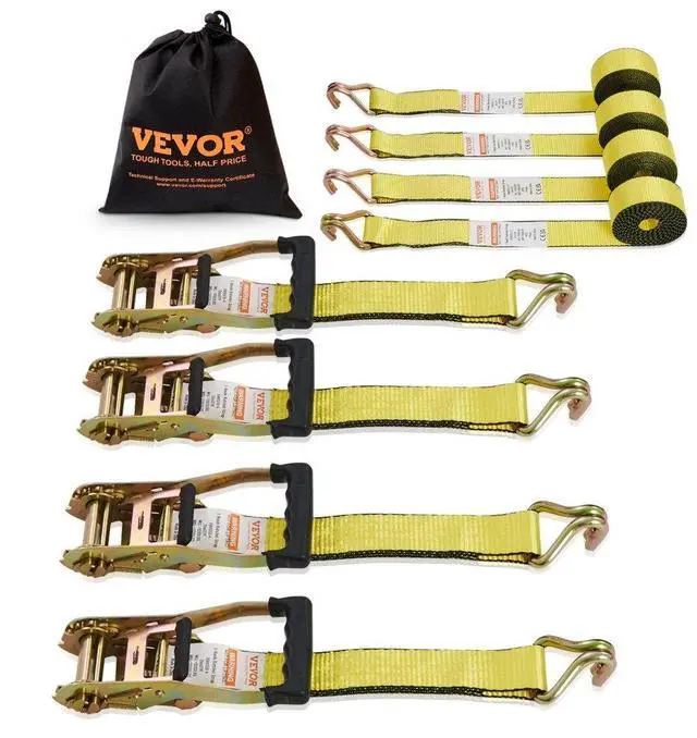 VEVOR Ratchet Tie Down Straps (4PK), 5000 lb Break Strength, Double J Hook Includes 4 Premium 2" x 15' Rachet Tie Downs with Padded Handles, for Moving Securing Cargo, Appliances, Lawn Equipment