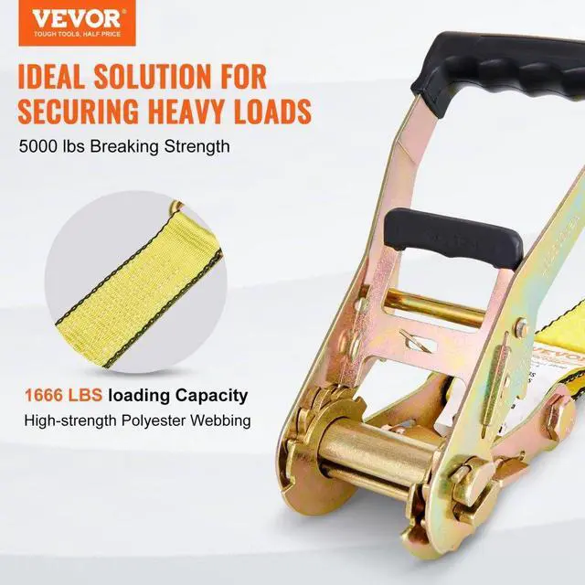 Rated Load Strength: 1666 lbs / 755.7 kg,Item Model: XMRS50-4-2,Item Thickness: 0.05 inch/ 1.2 mm,Hook Material: Carbon Steel 45#,Net Weight (including all accessories): 13.9 lbs / 6.3 kg,Breaking Strength: 5000 lbs / 2268 kg,Surface Treatment: Color Zinc Plating,Hook Thickness (Diameter): 0.37 inch / 9.3 mm,Item Dimensions: 2 inch x 15 ft / 0.05 m x 4.6 m,Quantities: 4 Pieces,Item Width: 2 inch / 50.8 mm,Webbing Material: Polyester