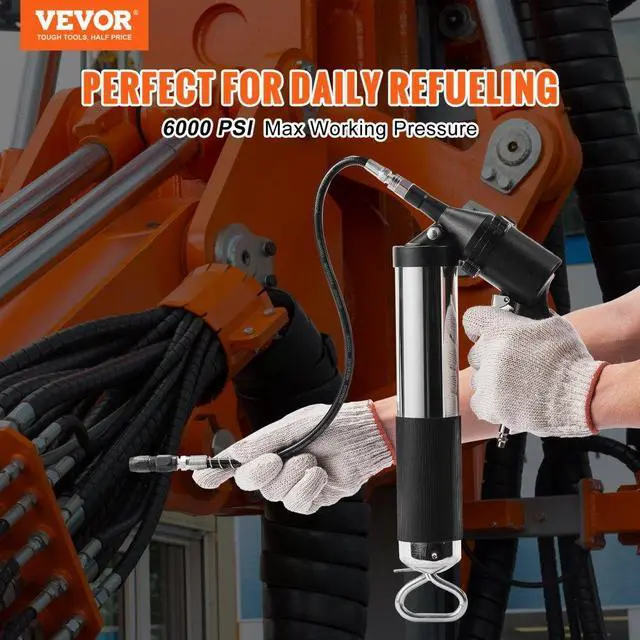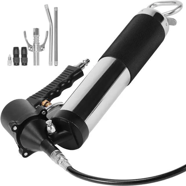 VEVOR Air Operated Grease Gun, 6000PSI, 14 OZ/400 CC Capacity Heavy Duty Pneumatic Grease Gun, with 18.5 Inch Flexible Hose, 1 Black Flat Coupler Pointed Coupler Bent Metal Pipe Locking Clamp Coupler