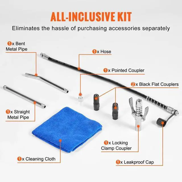 VEVOR Pistol Grip Grease Gun, 6000 PSI, 14 OZ / 400 CC Capacity Heavy Duty Professional Grease Gun, with 19.69 Inch Flexible Hose 2 Black Flat Couplers, 1 Pointed Coupler, and 2 Rigid Metal Pipe