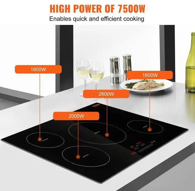 VEVOR Electric Cooktop, 4 Burners, 30'' Induction Stove Top, Built-in Magnetic Cooktop 7500W, 9 Heating Level Multifunctional Burner, LED Touch Screen with Child Lock & Over-Temperature Protection
