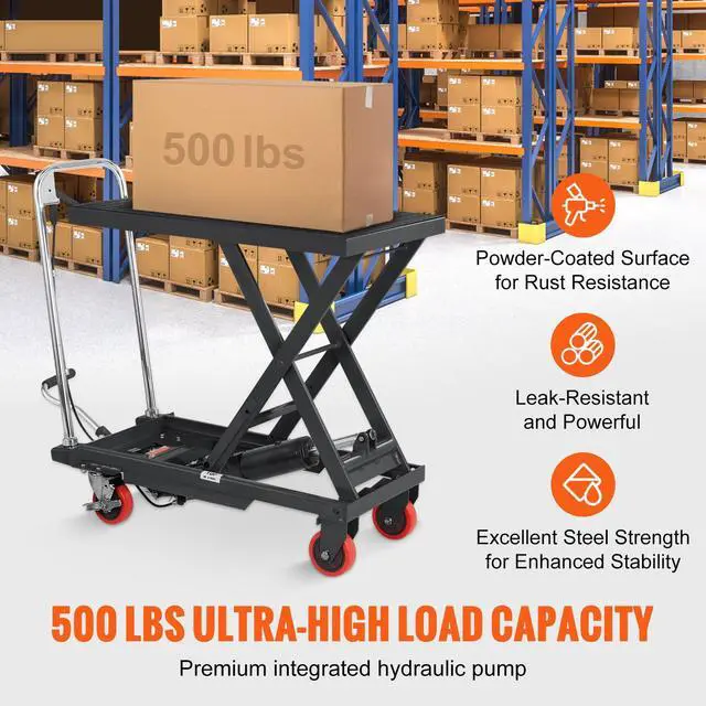 VEVOR Hydraulic Lift Table Cart, 500lbs Capacity 28.5" Lifting Height, Manual Single Scissor Lift Table with 4 Wheels and Non-slip Pad, Hydraulic Scissor Cart for Material Handling, Black
