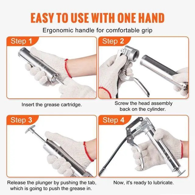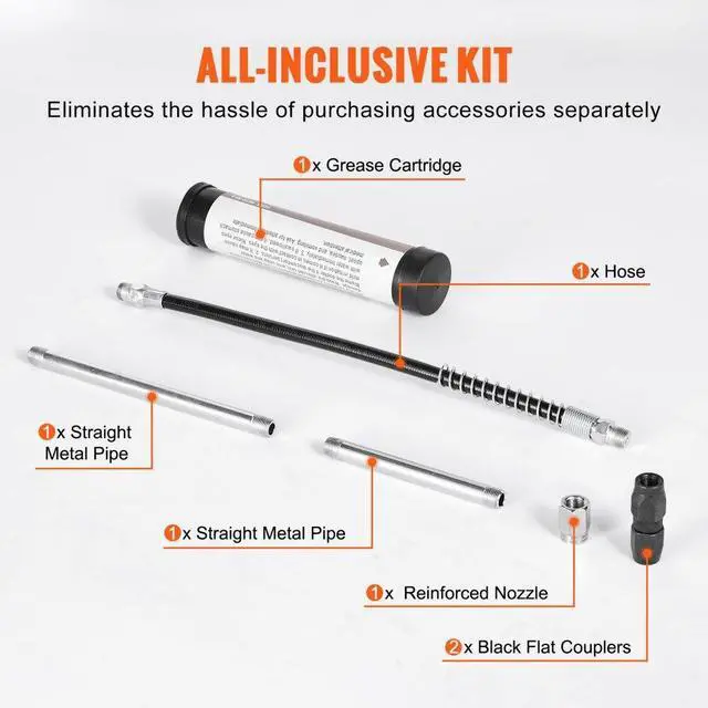 VEVOR Pistol Grip Grease Gun, 3500 PSI, 4 OZ / 120 CC Capacity Heavy Duty Professional Grease Gun, with 11.65 Inch Flexible Hose 2 Black Flat Couplers, 1 Reinforced Nozzle, and 2 Rigid Metal Pipes