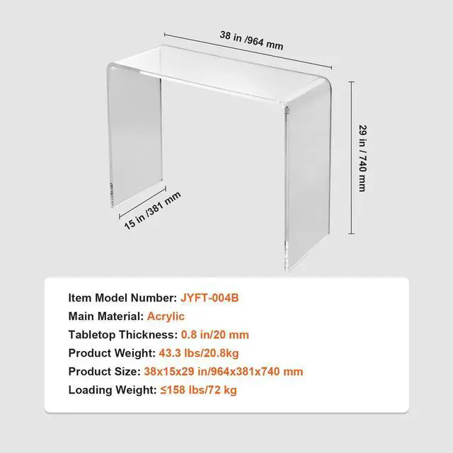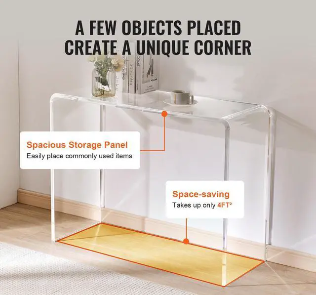 • VEVOR Acrylic Console Table, Clear Acrylic End Table, Transparent Acrylic Side Table 38.2x15x29.3 inch, for Foyer, Living Room, Dining Room