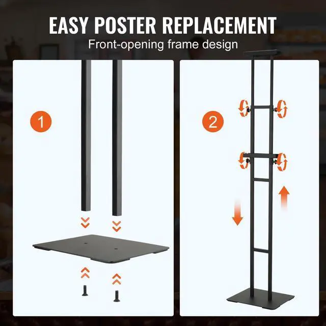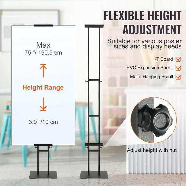 VEVOR Poster Stand, Adjustable Height Up to 75", Double-Sided Heavy Duty Pedestal Sign Holder, Floor Standing Sign Holder Banner Stand with Shock-absorbing Base for Display, for Board and Foam, Black