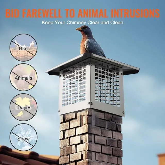 VEVOR Chimney Cap, 9 x 9 inch, 304 Stainless Steel Fireplace Chimney Cover, Not Easily Toppled & Practical Accessories & Easy Installation, Fits Mesh Flue Covers Outside Clay Flue Shingles, Silver