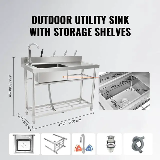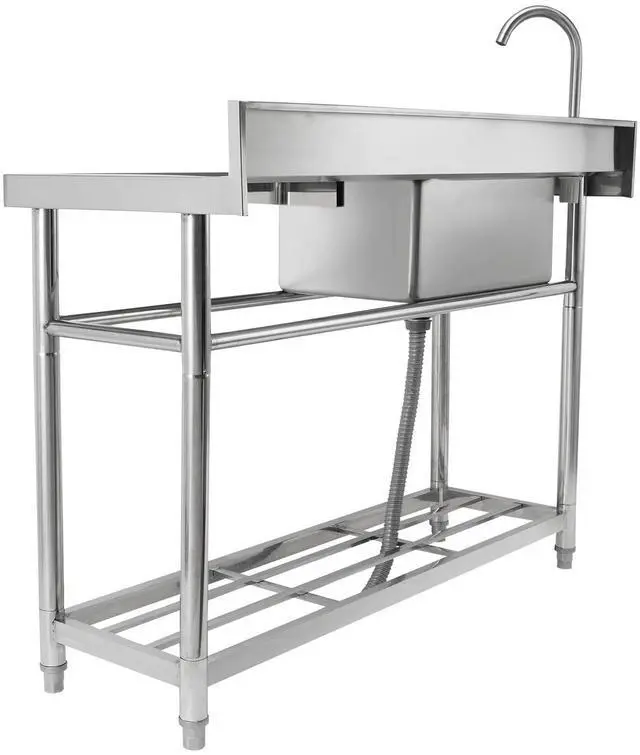 • VEVOR Stainless Steel Utility Sink, Free Standing Single Bowl Commercial Kitchen Sink Set w/Workbench, 47 x 19.7 x 37.4 in Commercial Single Bowl Sinks for Garage, Restaurant, Laundry, NSF Certified