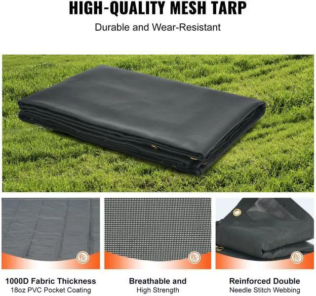 VEVOR Dump Truck Mesh Tarp, 7.5x18 ft, PVC Coated Black Heavy Duty Cover with 5.5" 18oz Double Pocket, Brass Grommets, Reinforced Double Needle Stitch Webbing Fits Manual or Electric Dump Truck System