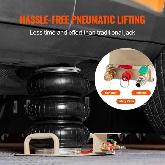 VEVOR Air Jack, 3 Ton/6600 lbs Triple Bag Air Jack, Airbag Jack with Six Steel Pipes, Lift up to 17.7 inch/450 mm, 3-5 s Fast Lifting Pneumatic Jack, with Side Handles for Car, Garage, Repair (Beige)