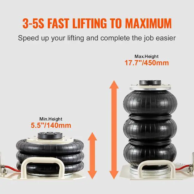 VEVOR Air Jack, 3 Ton/6600 lbs Triple Bag Air Jack, Airbag Jack with Six Steel Pipes, Lift up to 17.7 inch/450 mm, 3-5 s Fast Lifting Pneumatic Jack, with Side Handles for Car, Garage, Repair (Beige)