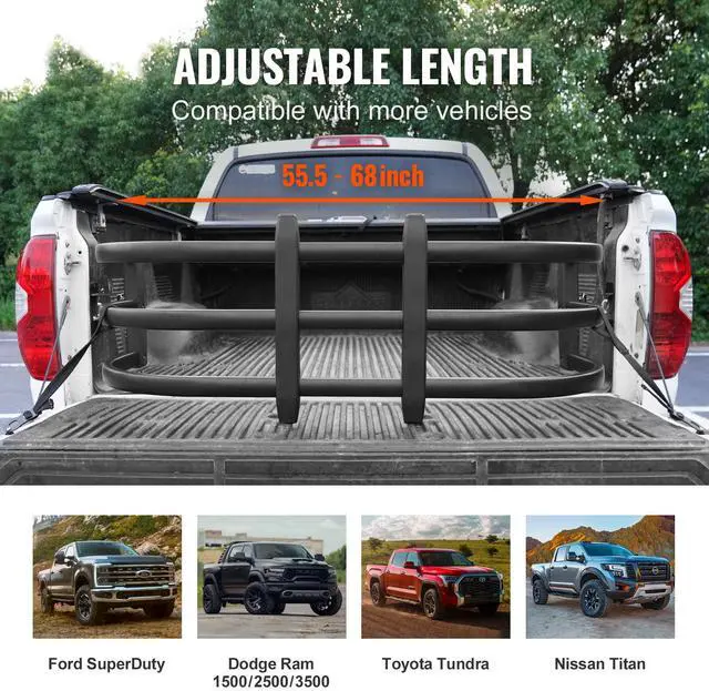 VEVOR Truck Bed Extender, Aluminum Retractable Tailgate Extender, 55.5"-68", Fits for Ford Super Duty, F150, Dodge Ram 1500/2500/3500, Toyota Tundra, Nissan Titan, Chevrolet Silverado, GMC Sierra