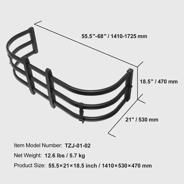 Item Model Number: TZJ-01-02,Material: Aluminum,Net Weight: 12.6 lbs/5.7 kg,Adjustable Length: 55.5"-68"/1410-1725 mm,Product Size: 55.5×21x18.5 inch/1410x530x470 mm