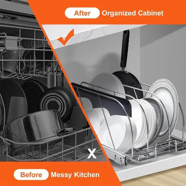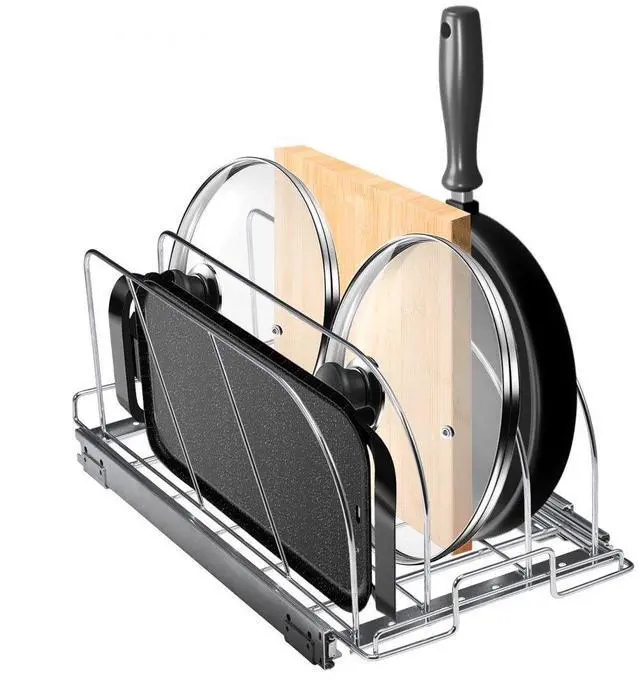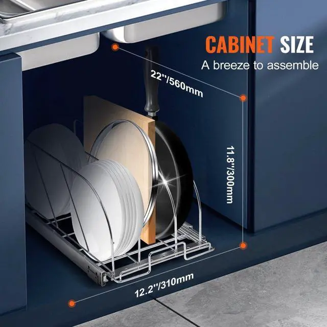 VEVOR Pan and Pot Rack, Expandable Pull Out Under Cabinet Organizer, Cookie Sheet Baking Pans tray Organization, Adjustable Wire Dividers, Steel Lid Holder for Kitchen Cabinet & Pantry Storage, 11.7"W