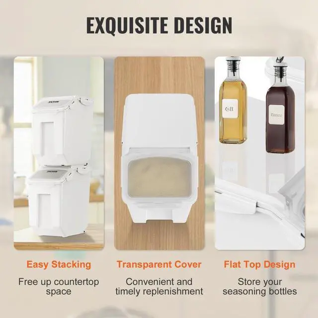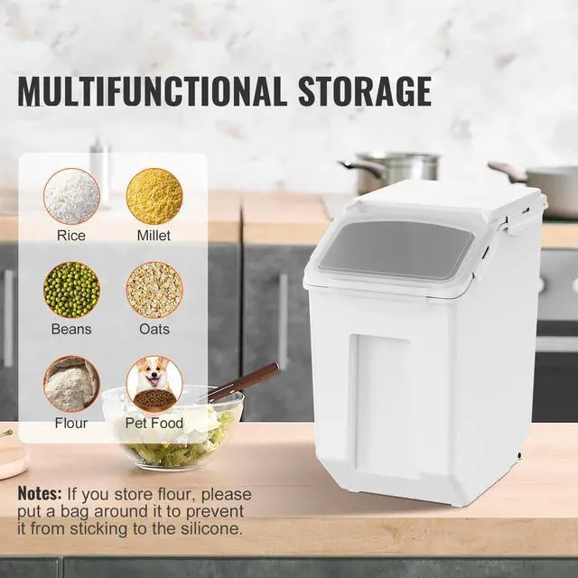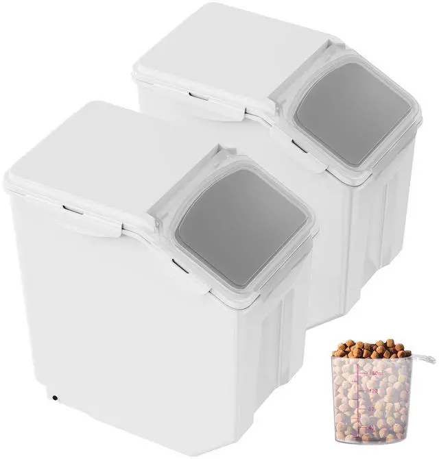 VEVOR Ingredient Storage Bin, 2 x 15L Dispenser Bin with 2 Measuring Cups, Attachable Casters and Airtight Lid, 2 Pcs/Set Dog Pet Food Storage Container, PP Material Kitchen Rice Cereal Flour Bin