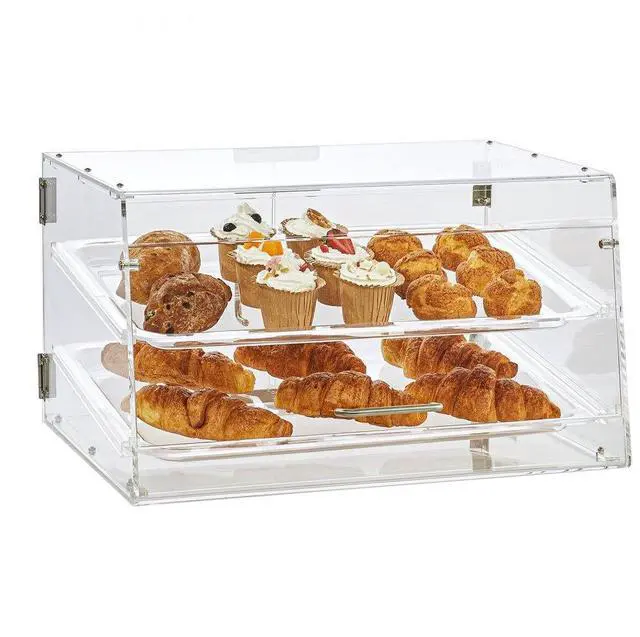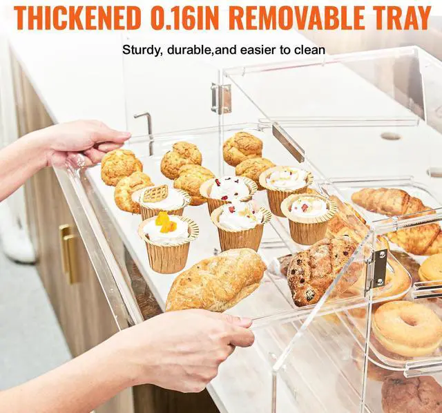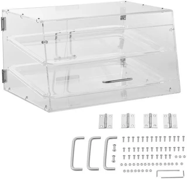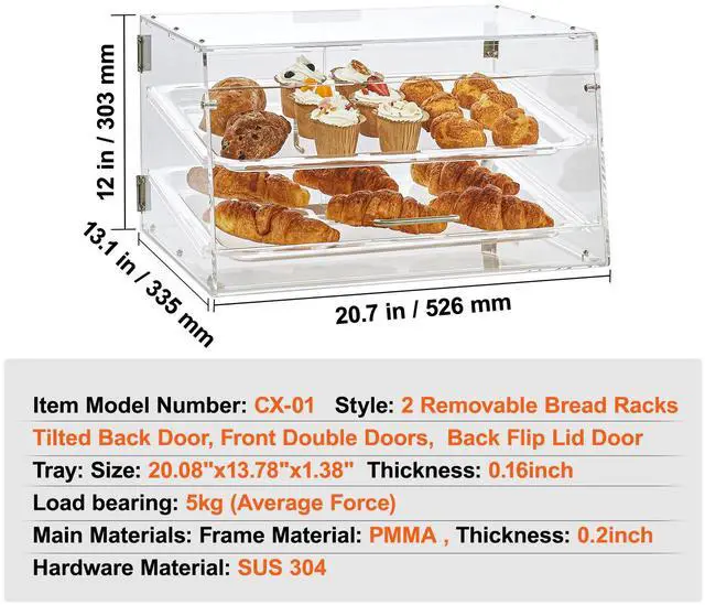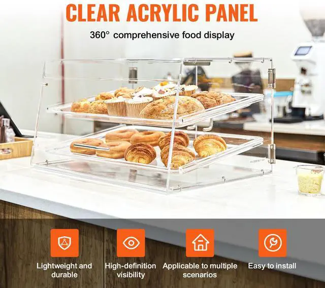 VEVOR Pastry Display Case, 2-Tier Commercial Countertop Bakery Display Case, Acrylic Display Box with Rear Door Access & Removable Shelves, Keep Fresh for Donut Bagels Cake Cookie, 20.7"x13.2"x11.9"