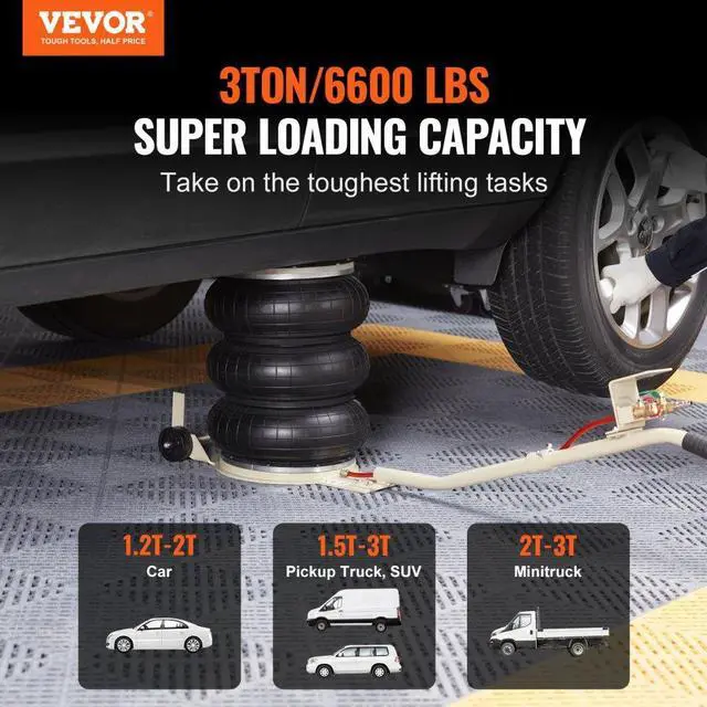 VEVOR Triple Bag Air Jack 3 Ton/6600 lbs Pneumatic Jack for Car SUV Lifting