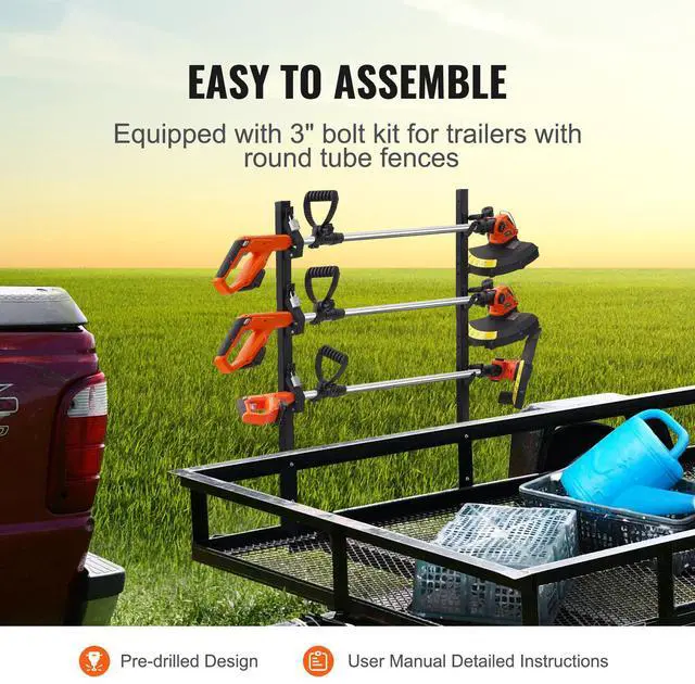 • VEVOR Trimmer Rack, 3 Place Weeder Trimmer Rack, Locking Trim Holder Landscape Trailer Rack Carrier Mount on Open Pickup/Trailer Enclosed Trailers, Pair