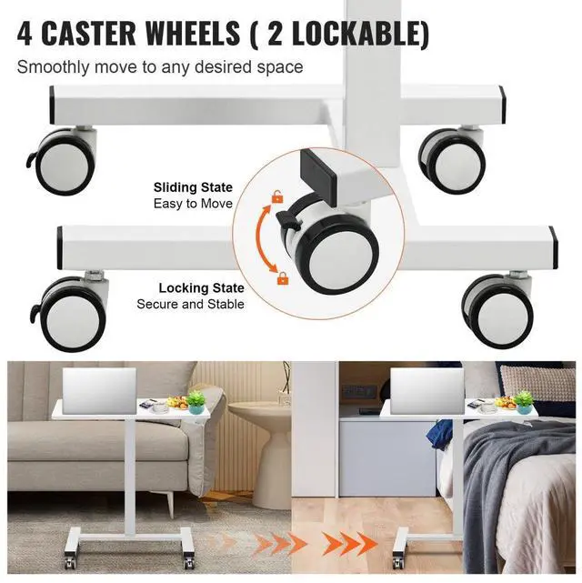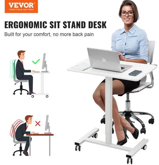 VEVOR Mobile Standing Desk, 28"-44" Gas-Spring Height Adjustable Sit-Stand Desk, 4 360° Swivel Wheels (2 Lockable) Portable Rolling Laptop Table Computer Cart for Home Office School, 40LBS Loading