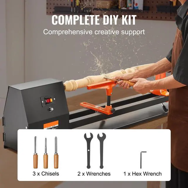 VEVOR Benchtop Wood Lathe, 14 in x 40 in, 0.5 HP 370W Power Wood Turning Lathe Machine, 4 Speed Adjustable 885/1245/1715/2425 RPM with Chisels Faceplate Plastic Handle Hex Wrench, for Woodworking