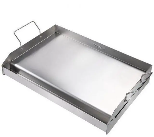 VEVOR Stove Top Griddle, 23.5"x16" Pre-Seasoned Stainless Steel Griddle, Rectangular Double Burner Griddle Pan, Non-Stick Family Pan Cookware with Handles and Oil Groove, for BBQ, Gas Grills, Silver