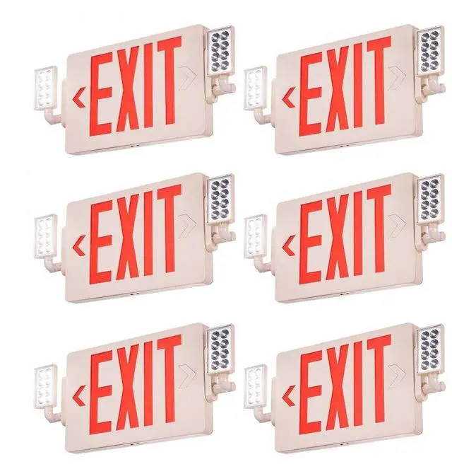 VEVOR LED Exit Sign with Emergency Lights, Two Heads Emergency Exit Light with Battery Backup, Combo Red Letter Fire Exit Lighting, Commercial Exit Signs for Business, White Tested to UL Standards