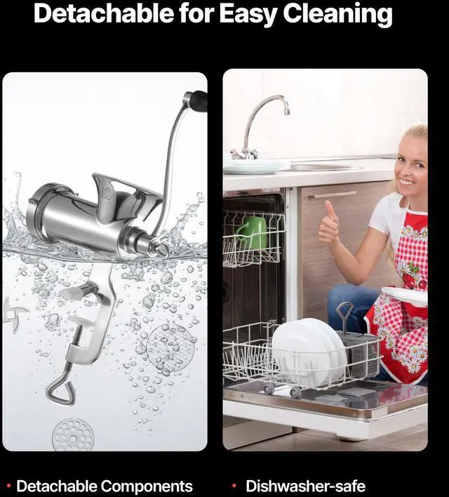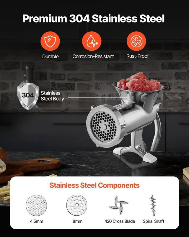 • VEVOR Manual Meat Grinder, 304 Stainless Steel Hand Meat Grinder with Steel Table Clamp, Meat Mincer Sausage Maker & 2 Cutting Plates, Cookie Attachment, Sausage Tube for Beef Pepper Mushroom Cookie