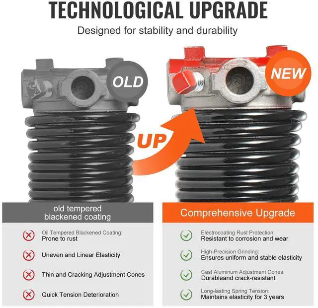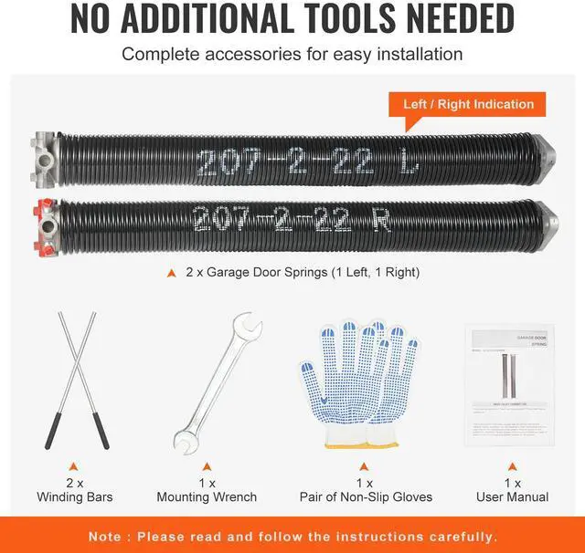 VEVOR Garage Door Torsion Springs, Pair of 0.207 x 2 x 22inch, 16000 Cycles, Garage Door Springs with Non-Slip Winding Bars, Gloves and Mounting Wrench, Electrophoresis Coated for Replacement