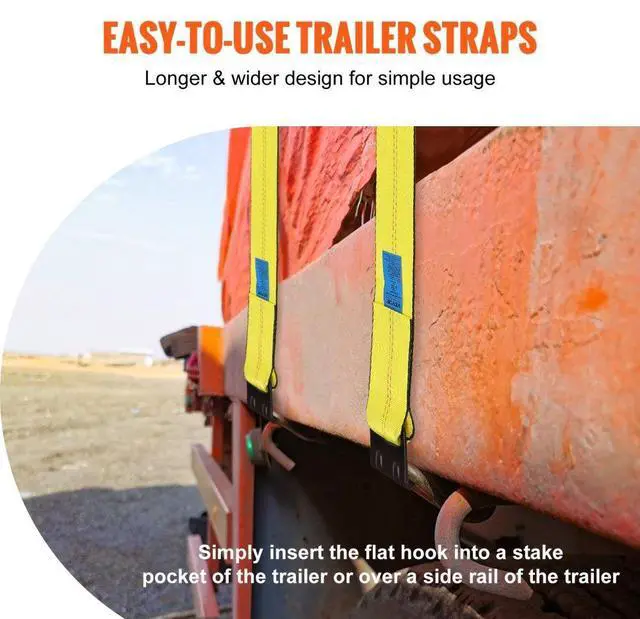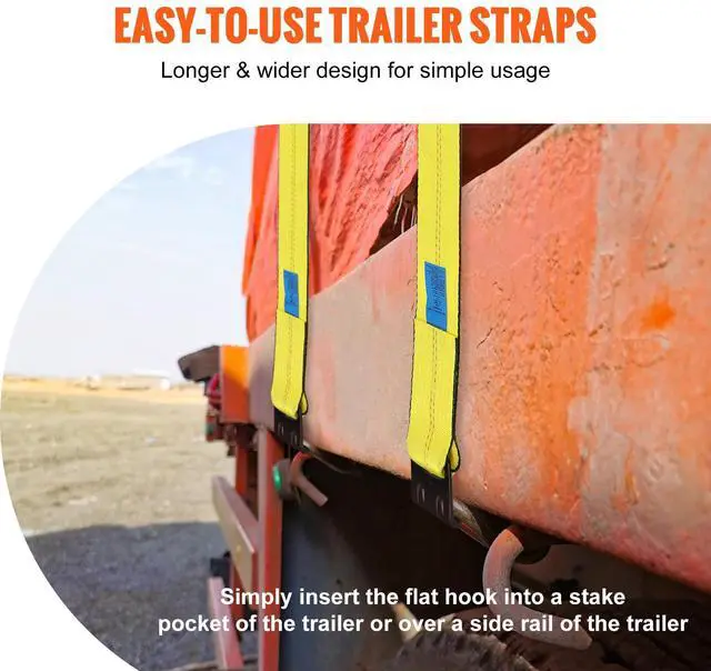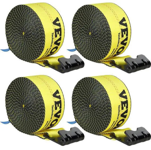 VEVOR Winch Straps, 4" x 30', 6000 lbs Load Capacity, 18000 lbs Break Strength, Truck Straps with Flat Hook, Flatbed Tie Downs Cargo Control for Trailers, Farms, Rescues, Tree Saver, Yellow (4 Pack)