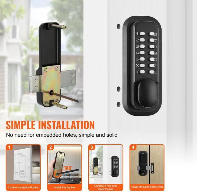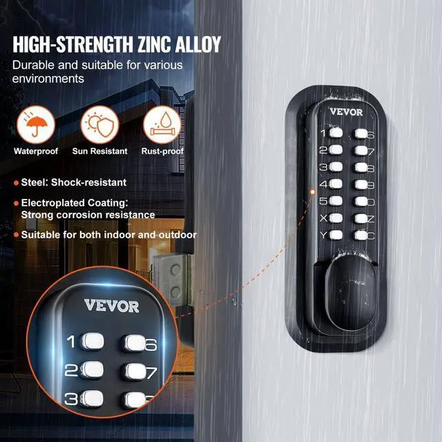 VEVOR Mechanical Keyless Entry Door Lock, 14 Digit Keypad, Outdoor Gate Door Locks Set with Surface-mounted Latch, Water-proof Zinc Alloy, Keypad and Knob, Easy to Install, for Garden, Garage, Yard
