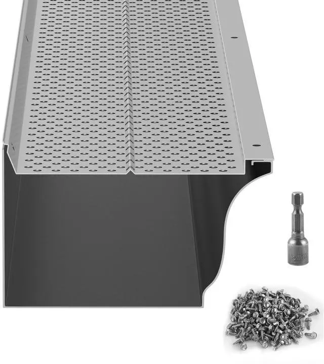 VEVOR Gutter Guard, 5 inch Width, Aluminum Leaf Filter DIY Gutter Cover, 26 PCS 104 ft Total Length, 0.157'' Hole Diameter & 0.02'' Thick Raptor Gutter Guards Fits Any Roof or Gutter Type