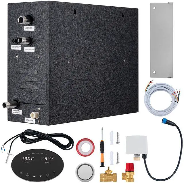 VEVOR Steam Shower Generator, 15 kW, Segmented Heating & Temperature Customization & 24h Timer Steam Bath Kit, Automatic Drainage Luxury Home Steam Shower System, Acrylic Room Max. 530 Cu. Ft.