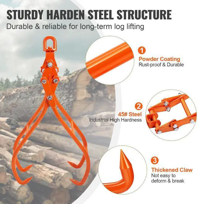 VEVOR Timber Claw Hook, 28 inch 4 Claw Log Grapple for Logging Tongs, Swivel Steel Log Lifting Tongs, Eagle Claws Design with 2205 lbs/1000 kg Loading Capacity for Tractors, ATVs, Trucks, Forklifts