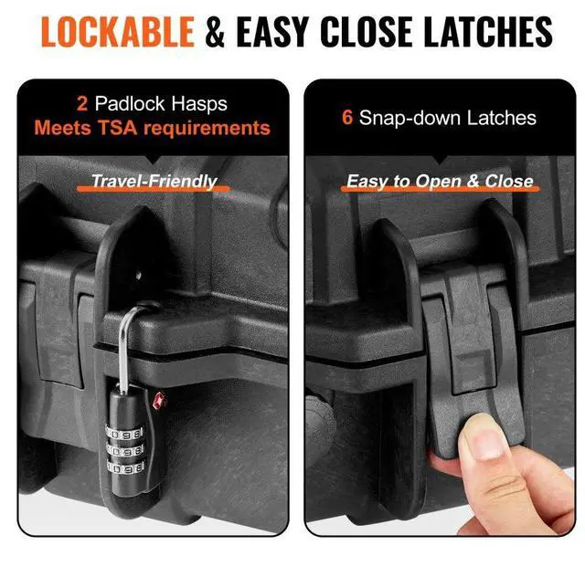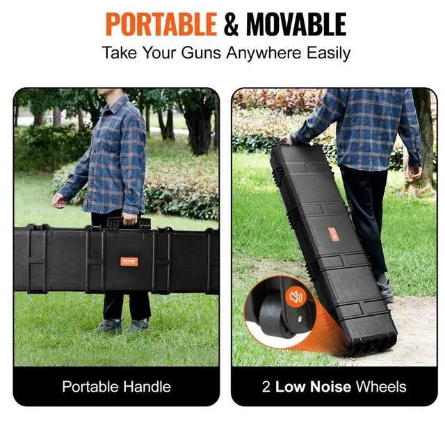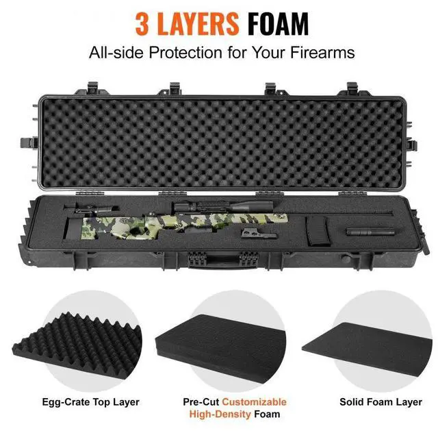 VEVOR Tactical Range Case, Outdoor Tactical Hard Case with 3 Layers Fully-protective Foams, 50 inch lockable Hard Tactical Range Case with Wheels, IP67 Waterproof & Crushproof