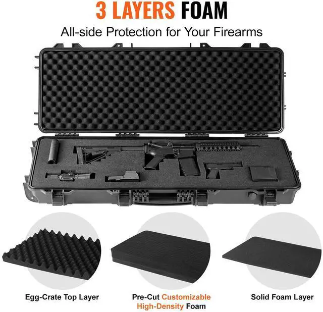 VEVOR Tactical Range Case, Outdoor Tactical Hard Case with 3 Layers Fully-protective Foams, 42 inch lockable Hard Tactical Range Case with Wheels, IP67 Waterproof & Crushproof
