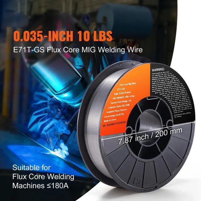 Tensile Strength: 560 MPa,Spool Diameter: 7.87 in / 200 mm,Item Model Number: E71T-GS,Per Spool Weight: 10 lbs / 4.5 kg,Wire Diameter: 0.035 in / 0.9 mm