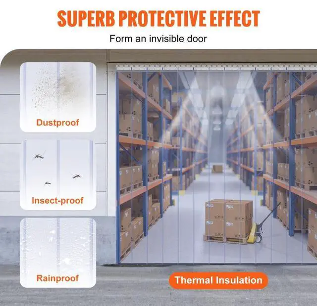 VEVOR Strip Curtain 16PCS, 96" Height, 96" Width, 0.08" Thickness, Clear Smooth Plastic Door Strips with 50% Overlap, PVC Strip Door Curtain Freezer Curtain for Warehouses, Walk in Freezers, Coolers