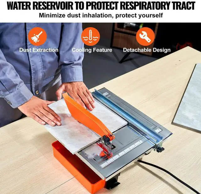 VEVOR Wet Tile Saw, 7-inch 65Mn Steel Blade, 3500 RPM Induction Motor, Tile Cutter Wet Saw with Water Reservoir, 0-45 Degrees Miter Angle for Cutting Tiles and Stones, for DIY Enthusiasts