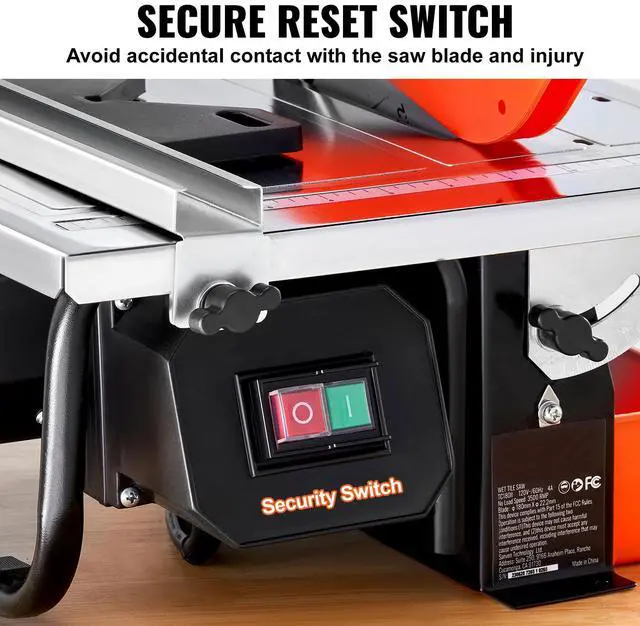 Blade Material: 65Mn Steel,Motor: Induction Motor, 3500±10%RPM,Blade Thickness: 0.09 in / 2.2 mm,Max Cutting Depth: 1.25 in / 31 mm,Item Model Number: TC180,Cutting Angle: Adjustable from 0 to 45 degrees,Main Table Size: 13 x 14 in / 330 x 360 mm,Material: Q235A Steel, Zinc-Coated Surface,Blade Size: 7 in x 0.6 in / 180 mm x 15.9 mm,Weight: 9.2 kg / 20.2 lb