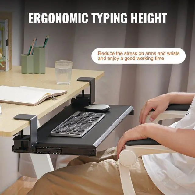 Built to Last: Enjoy long-lasting satisfaction with our premium MDF and Q235 carbon steel construction of this clamp keyboard tray. Its wear-resistant surface ensures durability while being easy to clean. Rest assured; the sturdy clamps ensure a reliable and enduring attachment.