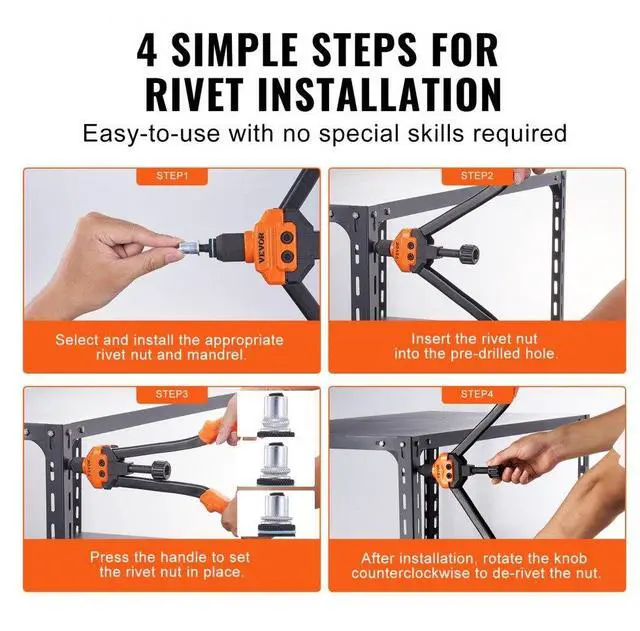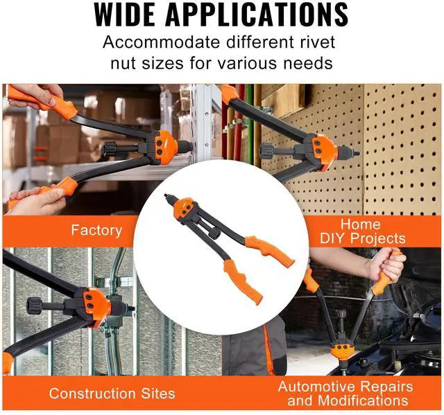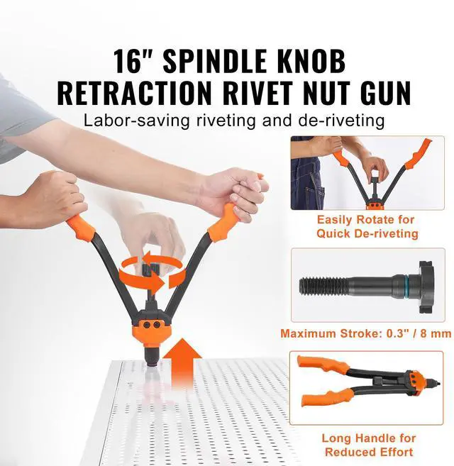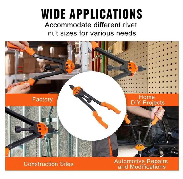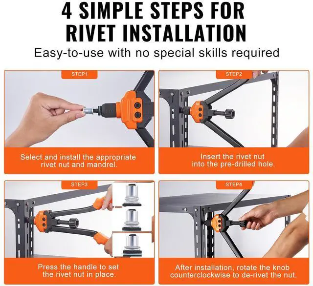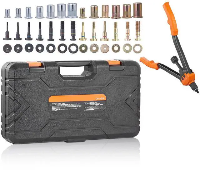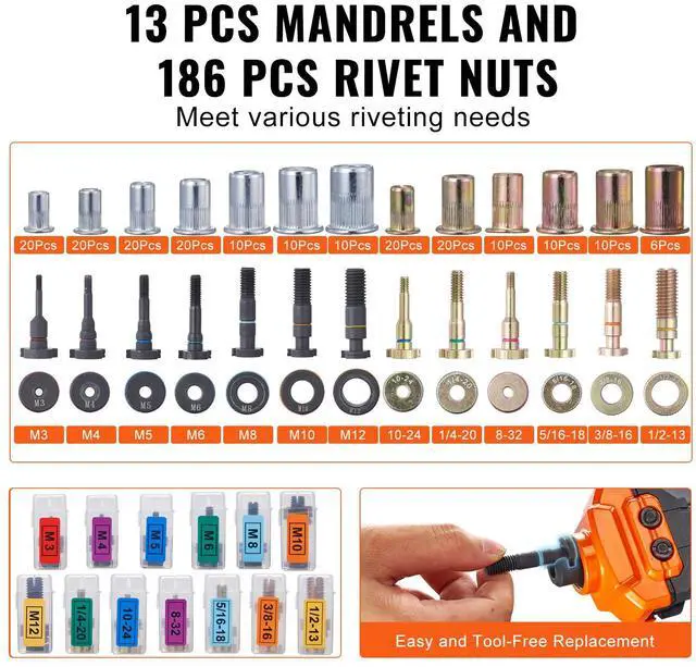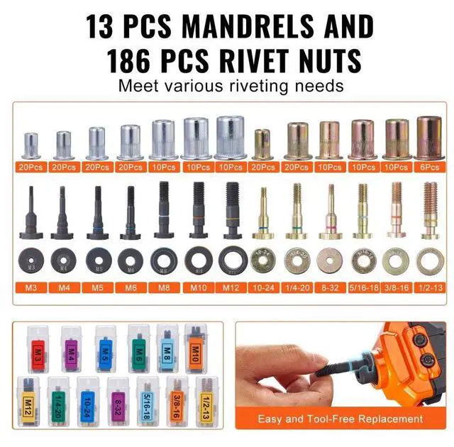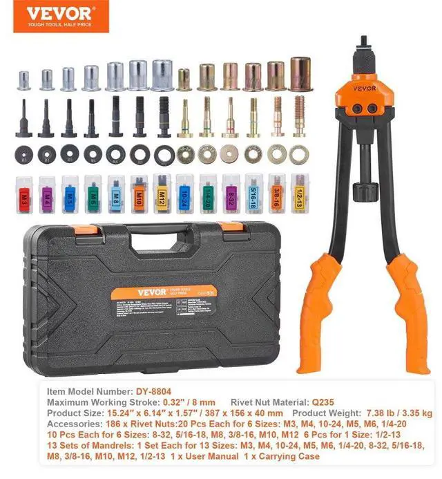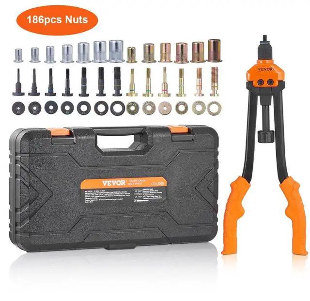 VEVOR 16" Rivet Nut Tool, Labor-Saving Rivnut Tool Kit with 13PCS Metric & SAE Mandrels, 186PCS Rivet Nuts,M3, M4, M5, M6, M8, M10, M12, 1/4-20, 5/16-18, 3/8-16,1/2-13, 8-32, 10-24 With Carrying Case