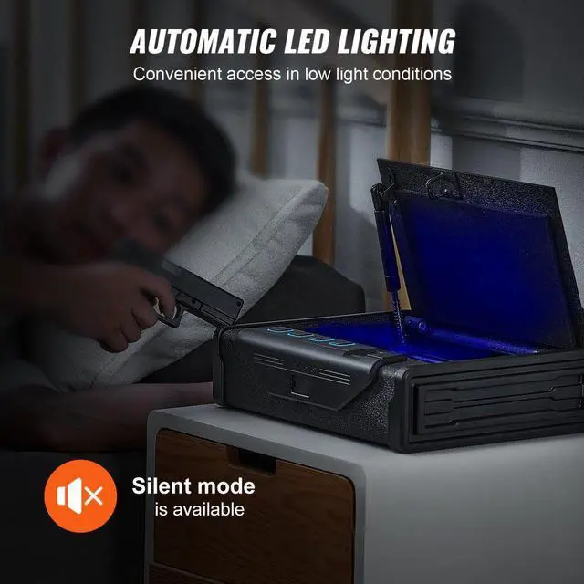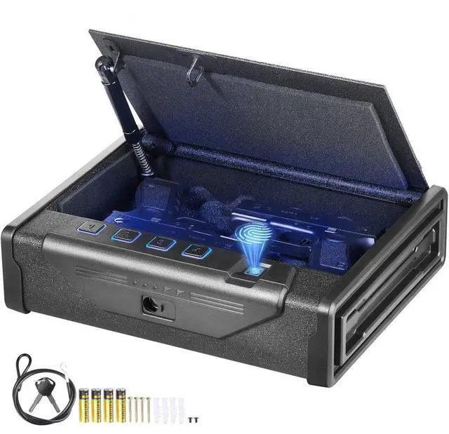VEVOR Gun Safe for Pistols, Biometric Gun Safe with Three Quick Access Ways of Fingerprints, Passwords and Keys, Handgun Safe for 2 Pistols for Home, Bedside, Nightstand, Car