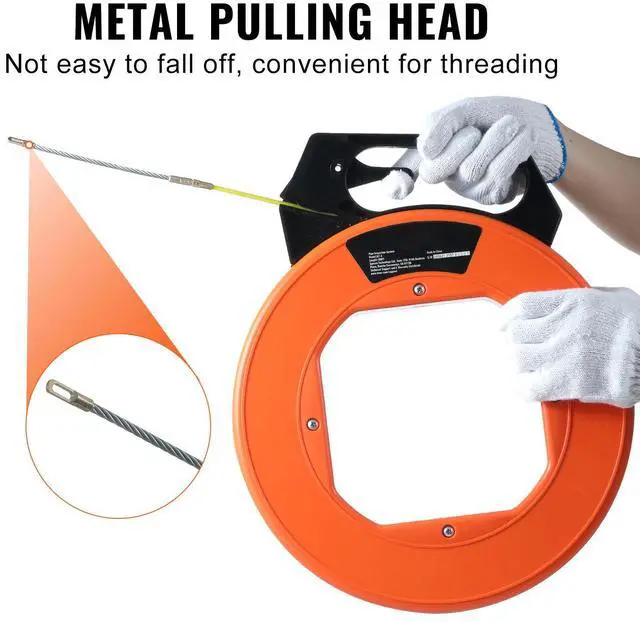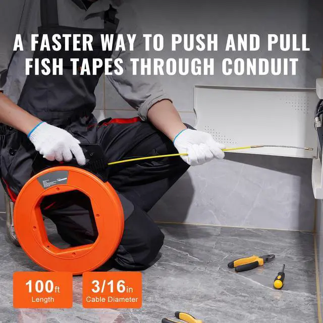 VEVOR Fish Tape, 100 ft, 3/16-inch, Fiberglass Wire Puller with Optimized Housing and Handle, Easy-to-Use Cable Puller Tool, Flexible Wire Fishing Tools for Wall and Electrical Conduit, Non-Conductive