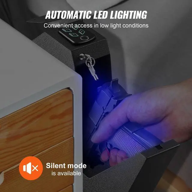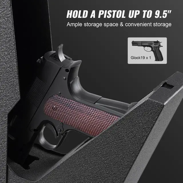 VEVOR Mounted Gun Safe for Pistols, Biometric Gun Safe with Three Quick Access Ways of Fingerprints, Passwords and Keys, Handgun Safe for 1 Pistol for Home, Bedside, Nightstand, Wall