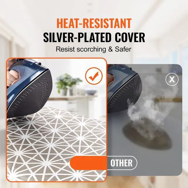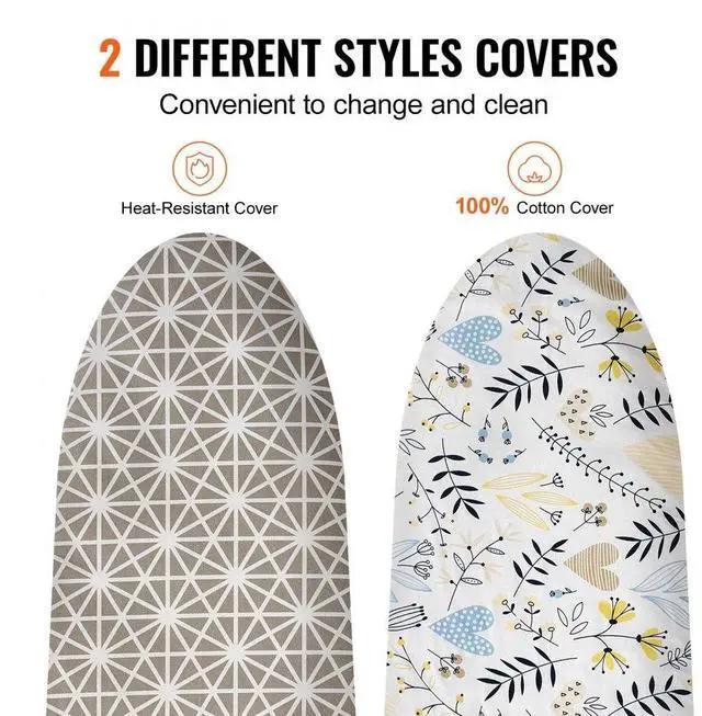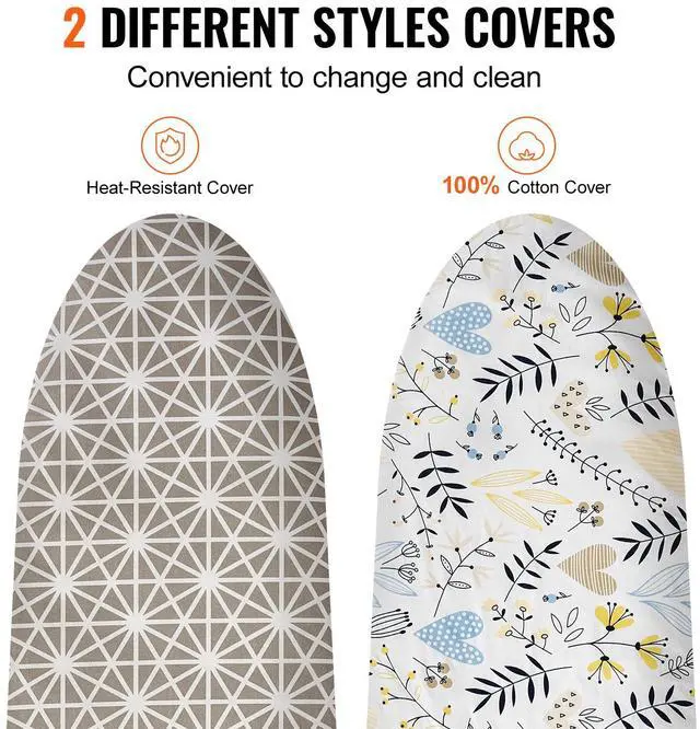 VEVOR Ironing Board with Large 51 x 13 Ironing Surface, Thickened 4 Layers Iron Board with Heat Resistant Cover and 100% Cotton Cover, 7 Adjustable Heights Ironing Board for Home Laundry Room Use