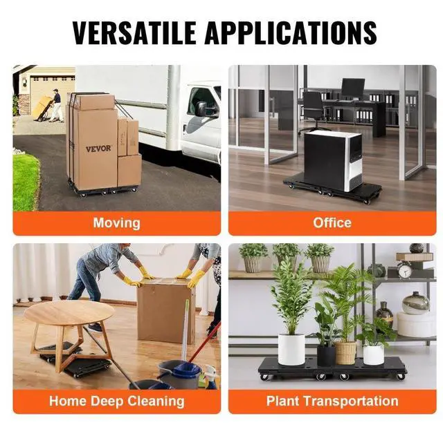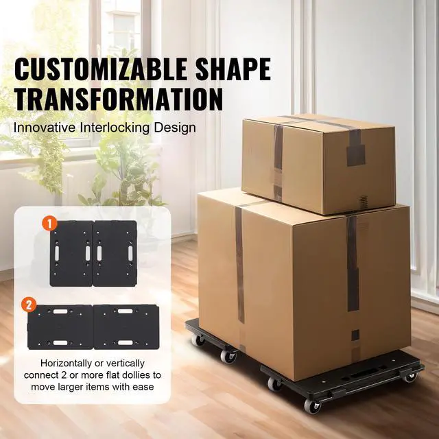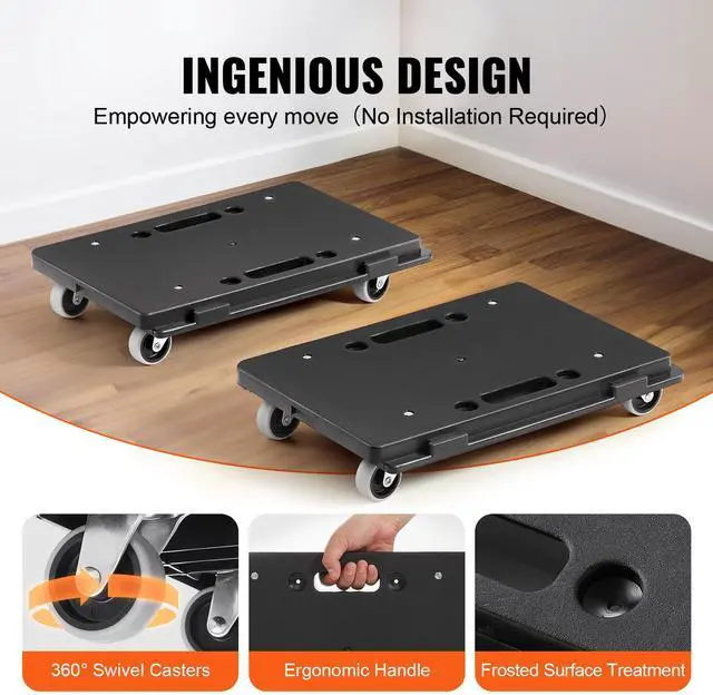 VEVOR Furniture Dolly, 500 lbs Capacity Each Count, Furniture Mover with Wheels, Portable Moving Rollers 4 Wheels Heavy Duty, Small Flat Dolly Cart with Interlocking for Heavy Furniture, 2 Pack, Black