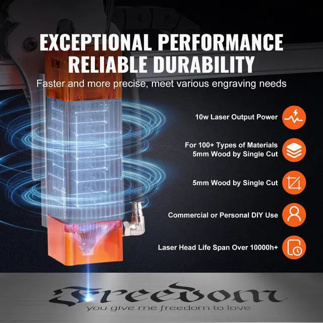 VEVOR Laser Engraver, 10W Output Laser Engraving Machine, 15.7" x 15.7" Large Working Area, 10000mm/min Movement Speed, Compressed Spot with Eye Protection, Laser Cutter for Wood, Metal, Acrylic