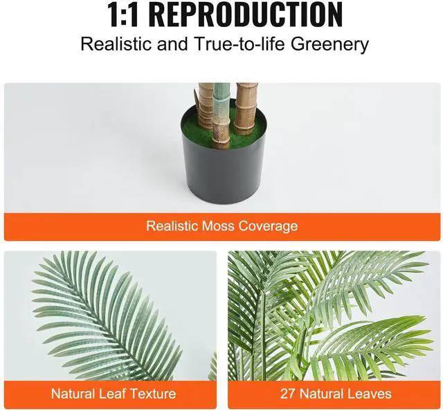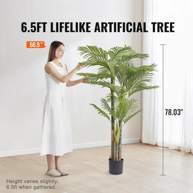 VEVOR Artificial Gold Cane Palm Tree, 6.5 FT Tall Faux Plant, PE Material & Anti-Tip Tilt Protection Low-Maintenance Plant, Lifelike Green Fake Tree for Home Office Warehouse Decor Indoor Outdoor