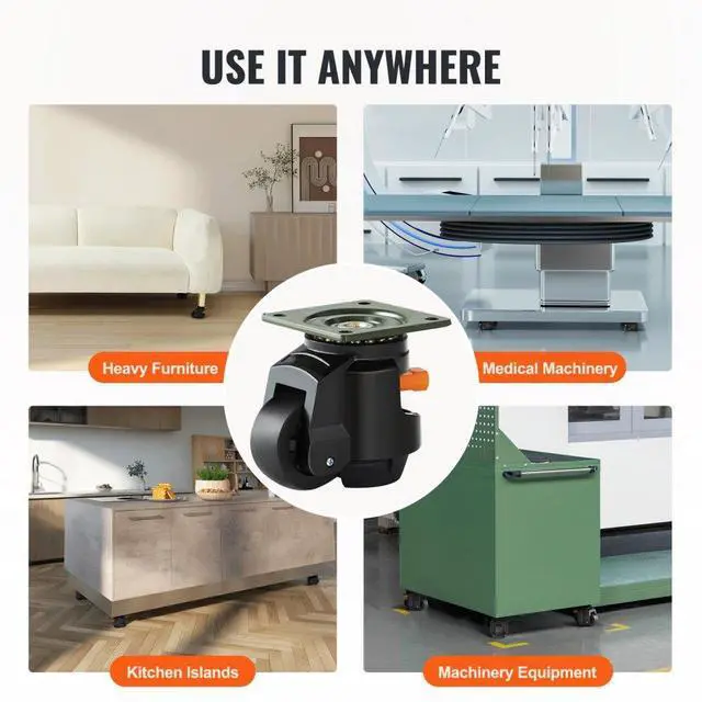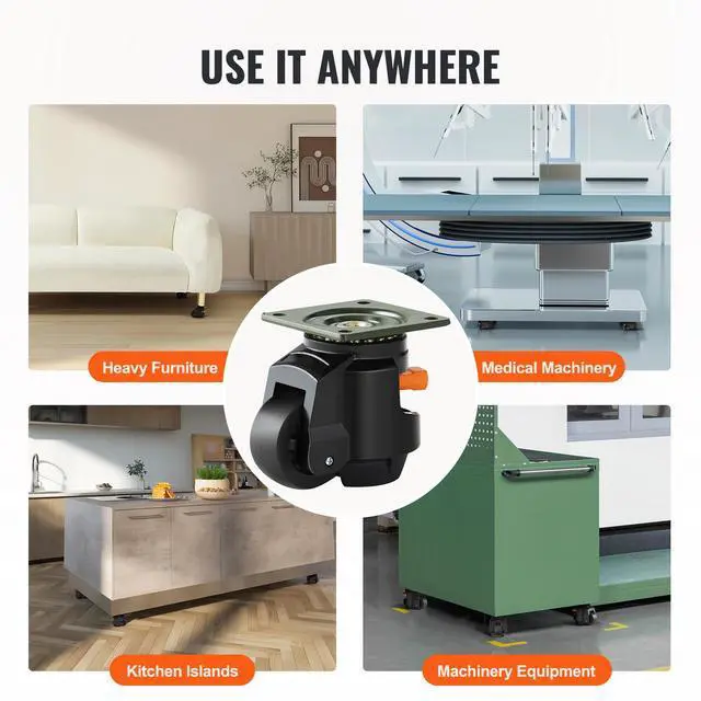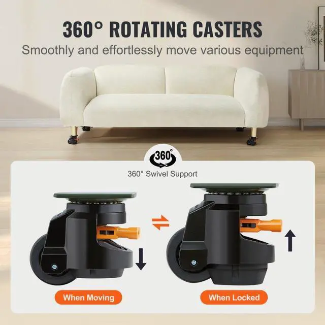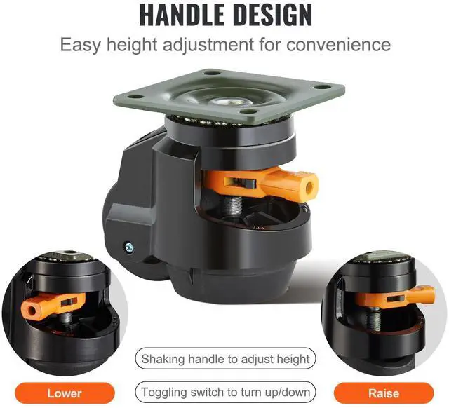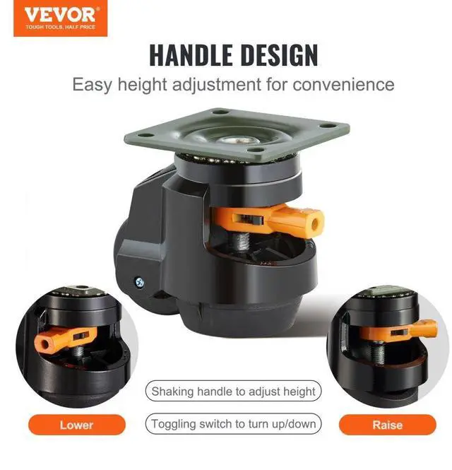 VEVOR Leveling Casters, Set of 4, 2200 lbs Total Load Capacity, 2.5 inches, Heavy Duty with Upgraded Handle Design, 360 Degree Swivel Caster Wheels, Adjustable Casters with Feet for Workbench, Machine